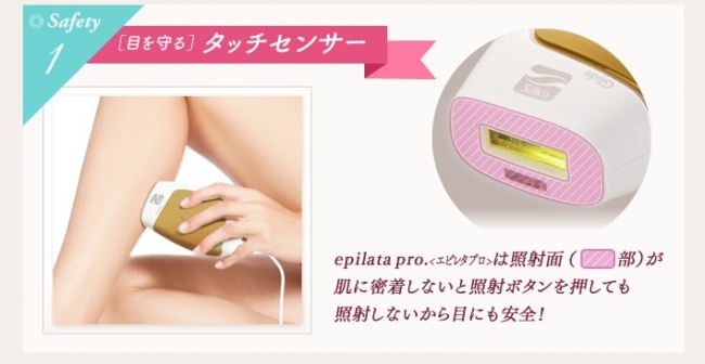家庭用光脱毛器「エピレタプロ EP-0230-N」は照射面が肌に密着しないと照射ボタンを押しても照射しないから目にも安全!