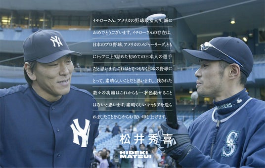 イチローさんの存在は、日本のプロ野球、アメリカのメジャーリーグ、ともにトップに上り詰めた初めての日本人の選手だと思います。これはとてつもなく日本の野球にとって、素晴らしいことだと思いますし、残された数々の功績はこれからも一才色褪せることはないと思います。素晴らしいキャリアを送られましたことを心からお祝い申し上げます。