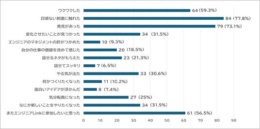 「日頃ない刺激に触れた」77.8%、「発見があった」73.1%、「ワクワクした」59.3%