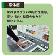 窓体感:断熱性能が異なる3種類の窓(トリプルガラス樹脂サッシ等)を設置し、夏や冬の外気に近い温度環境を再現。手で触れることで、窓の性能による断熱効果の違いを明確に実感できます。