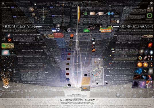 私たちが住むこの宇宙は、いったいどんな世界なのでしょうか。文部科学省が発行する科学ポスター「一家に1枚宇宙図」は、そんな素朴な疑問に応えるべく、最新の天文学が解き明かした宇宙の姿を示したものです。宇宙の始まりから現在に至るまで、そこでいったいなにがあったのかを描いたシンプルな図なのですが、難しい漢字も多く使われており、読むためのハードルを上げてしまっていることが課題となっていました。今回、デジタル化するにあたって、”ルビフルボタン“を導入することによってこの課題を解決することができました。ぜひ多くの方に宇宙を味わっていただければと思います。