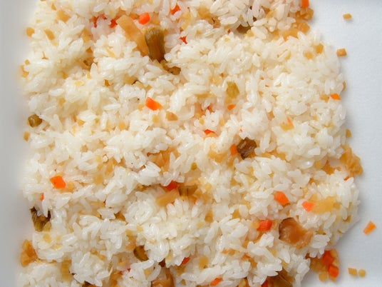たけのこ、にんじん、ふき、かんぴょう、しいたけを甘みのある薄味仕立てで煮あげて、酢飯にまぜこんでいます。海鮮の旨みをじゃませず、むしろ引き立てる、優しい味わいの五目すし飯です。