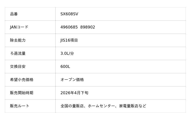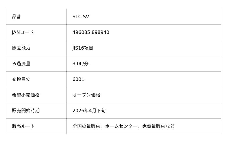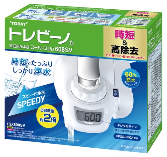 東レ株式会社(本社:東京都中央区、代表取締役社長:大矢 光雄)は、家庭用浄水器「トレビーノ(R)」の蛇口直結型「スーパーシリーズ」から、時短浄水と高除去性能を両立した新カートリッジを搭載した最上位モデル※1「スーパースリム608SV」を2026年4月下旬より発売します。さらに本カートリッジは、既存の蛇口直結型「スーパーシリーズ」にも使用可能であり、交換用カートリッジ「STC.SV」も同時発売します。