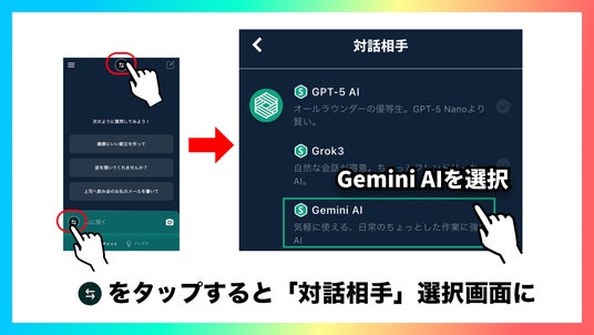 3. 対話相手からGeminiを選択すると、Googleが開発した最新AIとの対話を開始できます