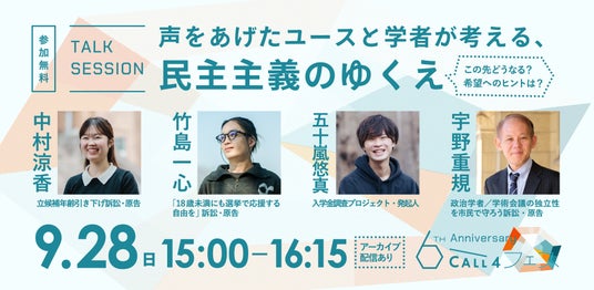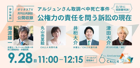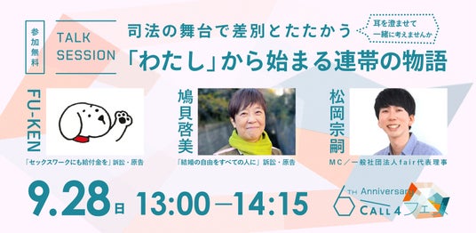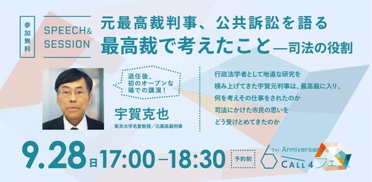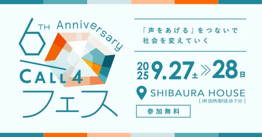 日本初(※1)の公共訴訟支援に特化したウェブプラットフォームCALL4(コールフォー)(運営:認定特定非営利活動法人CALL4、共同代表理事:谷口太規、丸山央里絵)は、正式リリース6周年を記念して9月27日(土)・28日(日)に東京で「CALL4フェス」を開催いたします(関西でも後日開催を予定)。