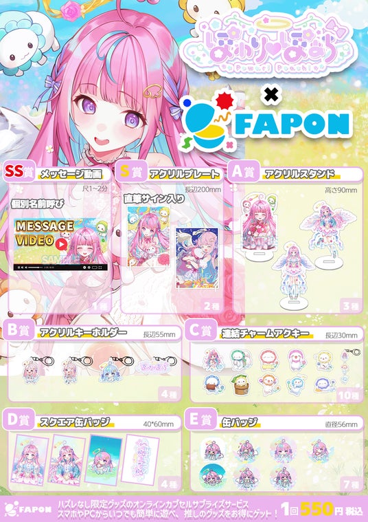 VTuber事務所として初となる自社オンラインくじ『FAPON』にて、910inc専属バーチャルYouTuberぽわり(ハート)ぽあちが誕生日タイアップを展開。