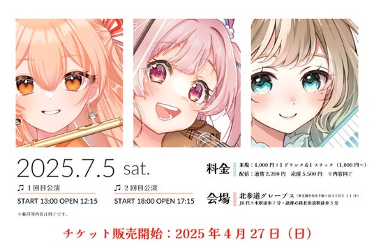 出演は当レーベル所属のヴァイオリニスト「舞弦ウラ」の他、フルート「柴音」、ピアノ「おまる」を招いて、クラシックの舞台でもプロとして演奏をこなす3名による公演です。