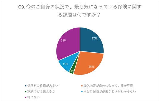 Q9. 今のご自身の状況で、最も気になっている保険に関する課題は何ですか?