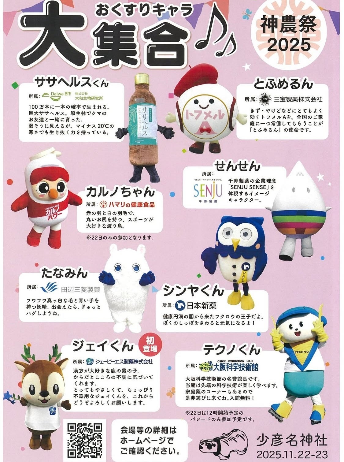 ●内容:当社「たなみん」やくすりのキャラクターの計16体が出演。パレードやPRステージ、撮影会を実施。