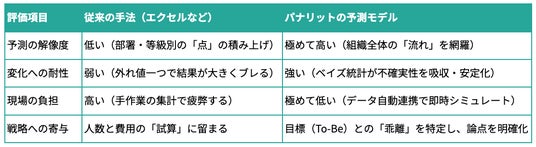 【比較表】従来の手法(エクセルなど)とパナリットの予測モデル