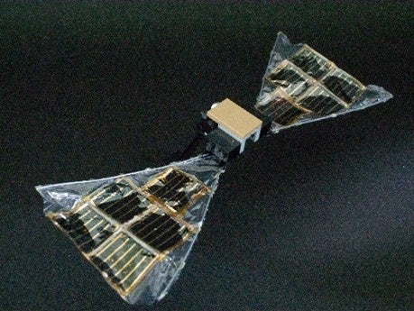 <超薄膜太陽電池を搭載した人工衛星のモックアップ>