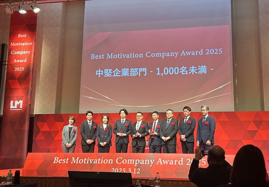 「ベストモチベーションカンパニーアワード2025」とは、リンクアンドモチベーションが2024年に従業員エンゲージメント調査を実施した企業の中から、企業と従業員の相互理解・相思相愛度合いを偏差値化した「エンゲージメントスコア※(12,650社、509万人のデータベースをもとに算出)」の高い10社が表彰される年に一度の式典です。この度、当社は中堅企業部門(1,000名未満)において 7位を受賞いたしました。