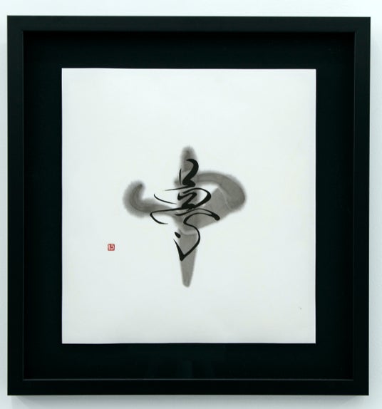 双方の繊細な感性が共鳴し、アーティストMUSASHIのエネルギーを墨で表現した唯一無二の作品