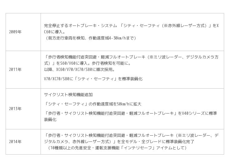 ■参考: ボルボの日本におけるオートブレーキ・システム導入の歩み