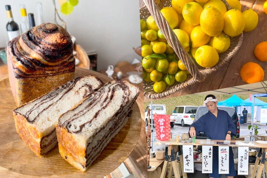 出店者(出身と販売物): ODD CAFE(西条市、旬のフルーツメニュー)/キッチンカーtsumugi(松山市、焼き菓子)/菊理さうな(今治市大島、天然腸ソーセージ&コーヒー)/なずな屋(西条市、ガーリックチキン&とりめし)/おはぎや外池×まっち(今治市波方町、おはぎ&地元野菜)/earthing(神奈川県、無添加酵母パン)/honoka(香川県、ビーズアクセサリー)