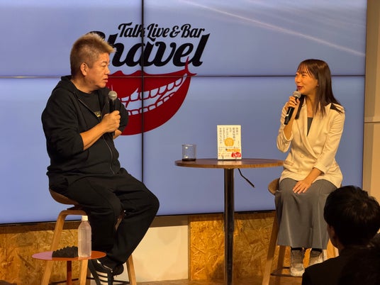 2025年11月に開催されたトークイベントにおいて、宮脇さきは堀江貴文氏と約1時間半にわたるフリートーク形式の対談を実施しました。