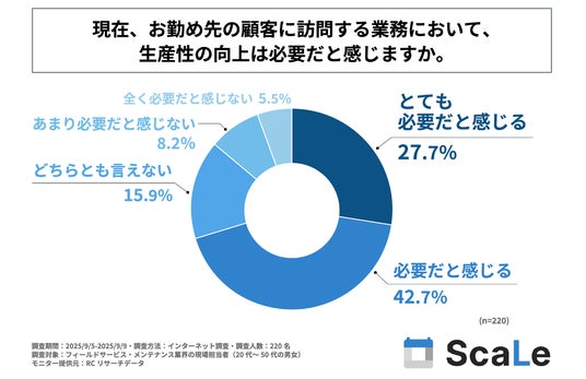 フィールドサービス・メンテナンス業界の現場の業務に3年以上従事する人の7割以上が、顧客に訪問する業務において生産性の向上が必要だと感じている