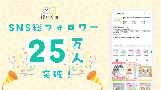 株式会社e-CHANNEL(本社:東京都港区、代表取締役社長平手佑季、以下「当社」)が提供する、保育士・幼稚園教諭向け総合情報メディア「ほいくis(ほいくいず)」は、Inatagram等、公式SNSの総フォロワー数が25万人を突破しました。