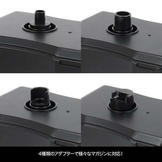 4種アダプターで幅広く対応&誤作動防止モード搭載アダプターは電動ガン・ガスガン・エアコッキングガンなど、幅広いマガジン規格に対応。
