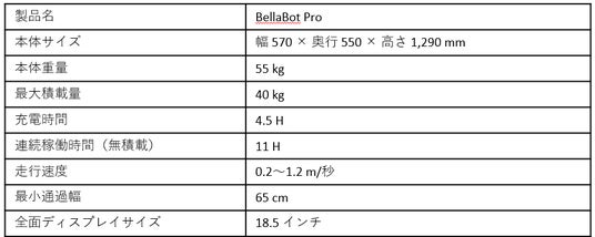 *「BellaBot Pro(PUDU社製)」の標準製品スペックです。ミスト仕様とは異なります。
