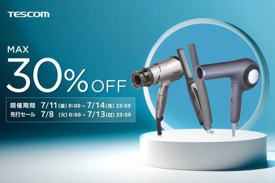 テスコム電機株式会社(本社:東京都千代田区、取締役会長兼社長:葉田順治、以下テスコム)は、Amazonで2025年7月11日(金)0:00から7月14日(月)23:59に開催される「Amazon プライムデー」において、テスコムの人気製品を最大30%OFFの特別価格で販売いたします。