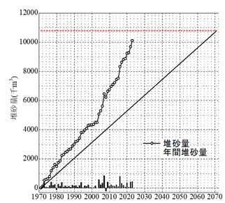ダムは設計段階で堆砂シミュレーションを行い、堆砂が進行することを見越した上で、100年間の使用に耐える容量で設計されます。しかし、災害の発生による大規模な想定を超える流入などの影響もあり、全国のダムで当初の想定を超える堆砂の進行が課題になっています。熊本県の緑川ダムは平成28年の熊本地震による上流域の崩壊と、その後の出水などを受けて貯水池内の堆砂が進行し、2023年度時点で堆砂容量は93.6%に達しており、堆砂を排出するための早急な対策が求められていました。