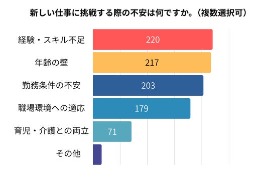 新しい仕事への不安、トップ3は「経験・スキル不足」「年齢の壁」「給与・待遇の不安」
