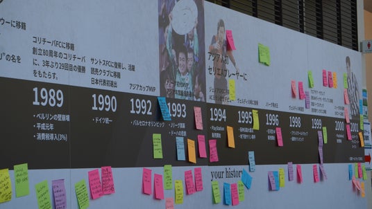 三浦知良選手年表共同作成イベント「わたしとキング」デビューからの40年間を振り返る年表に、来場者が「その時、私は〇〇していた」と自由に書き込み、共に年表を完成させる参加型企画を実施。三浦知良選手の歩みと、自身の思い出が重なることで、多くの方にとって記憶に残る特別な展示となりました。
