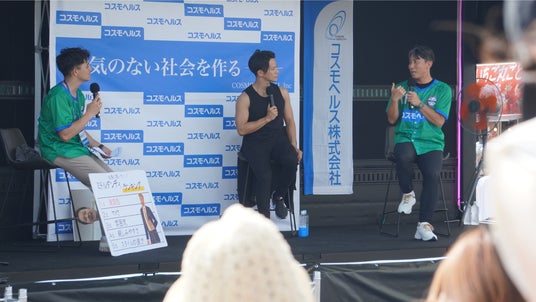 予防講演「“ミドルダンディ”の2人に聞く、いつまでの若々しくかっこよくいる秘訣」コスモヘルスが掲げる「病気のない社会を作る」というビジョンを体現する予防講演を開催。予防トレーナー・萩原慎也氏と前園真聖氏によるトークショー形式で、「いつまでも若々しくかっこよくいる秘訣」を伝えました。