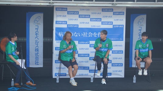 ゲストトークショー北澤豪氏、前園真聖氏、松井大輔氏が登壇。三浦知良選手との秘話や40年間のコンディショニング、食生活にまつわるエピソードを交えながら、スポーツと健康について語り、大きな反響を呼びました。