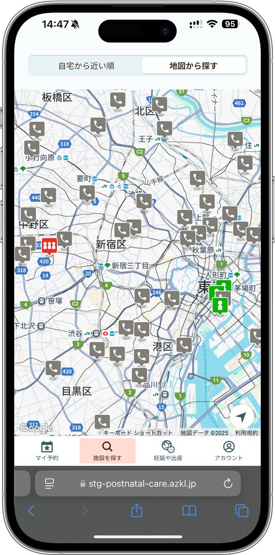 全国の産後ケア施設をマップから検索できます。あずかるこちゃん対応施設なら、ネットで空き状況確認と予約申込も可能です。