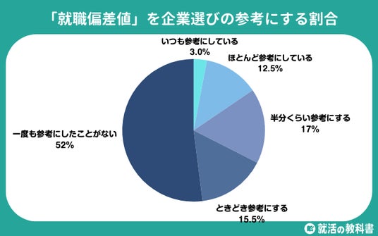 就職偏差値を企業選びに「一度も参考にしたことがない」と答えた人が52.0%と半数を超える結果となりました。