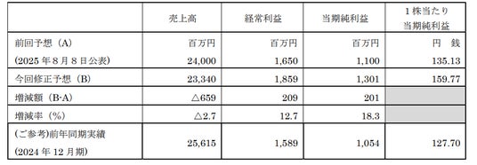 当社は、2025年8月8日に公表しました2025年12月期の通期業績予想及び配当予想を、下記のとおり修正いたしましたのでお知らせいたします。