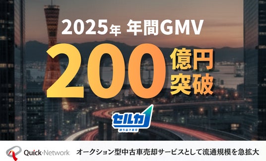クイック・ネットワーク株式会社(本社:兵庫県神戸市、代表取締役社長:田畑 翔利)が運営する中古車オークションサービス「勝ち抜き査定のセルカ」は、2025年1月~12月の累計流通取扱高(GMV)が200億円を突破しました。