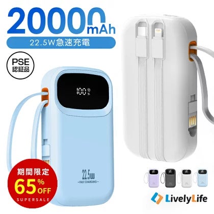 コンパクトなサイズに、一日中の充電を可能にする大パワーを凝縮。20000mAhの大容量と最新22.5W高速充電で、デバイスを常に満充電の状態に保ちます。さらにPSE認証取得で、安全性があるこそ安心。