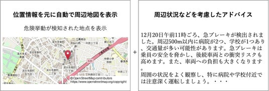 本システムは、あいおいニッセイ同和損保のテレマティクス自動車保険で蓄積された走行データを活用し、安全運転に対する意識をドライバーに持ち続けていただくことで、