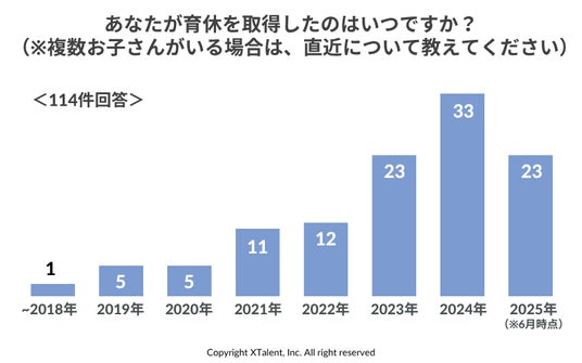 男性の育休取得率が年々右肩上がりで上昇する中、XTalent株式会社(読み:クロスタレント、本社:東京都港区、代表取締役社長:上原達也)は、男性の育休取得に関する実態調査を実施しました。