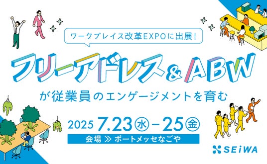 株式会社清和ビジネス(本社:東京都中央区 代表取締役:勝本 浩史)は、7月23日(水)から7月25日(金)に開催される「ワークプレイス改革EXPO(東京)」にて、『フリーアドレス&ABWが従業員のエンゲージメントを育む』をテーマに出展いたします。