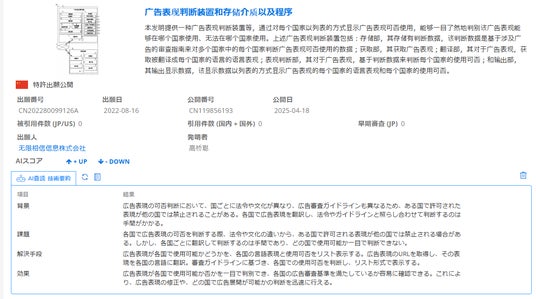 「生成AI特許調査・分析オプション Patentfield AIR」を利用した中国公報の日本語による独自要約作成例