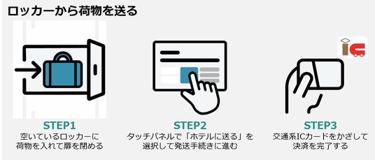 宿泊施設への配送は、ロッカーに配送したい手荷物を入れた後、スマートロッカー”SPACER”に備え付けのタッチパネルを操作するだけで、完全に無人で受付と決済ができます。