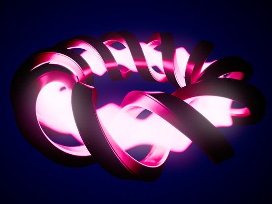 ヘリカル型核融合炉のらせん状のコイルとプラズマのイメージ
