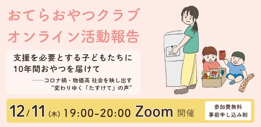 認定NPO法人おてらおやつクラブ(奈良県、代表理事:松島靖朗)は、2025年12月、子ども支援の現場での課題や支え合いの実践を伝える「歳末たすけあいイベント」(全3企画)を開催します。