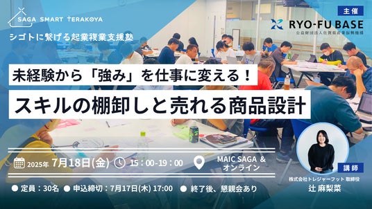 株式会社トレジャーフット(本社:神奈川県鎌倉市、九州支店:佐賀県佐賀市)は、令和5年度から3年連続で佐賀県・公益財団法人佐賀県産業振興機構 さが産業ミライ創造ベース(RYO-FU BASE)の「IT人材起業・複業推進事業」を受託しました。佐賀県内で起業・複業を目指す社会人・学生を対象に、「起業・複業講座」や「コミュニティ」、案件紹介やアイディアソン等の「実践の場」を提供することで、挑戦を後押しします。