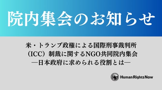 イスラエルのネタニヤフ首相に逮捕状を出していることなどを理由に、米国政府は、国際刑事裁判所(ICC、オランダ・ハーグ)への圧力を強めています。この問題を受け、国際社会における「法の支配」を掲げる日本政府が果たすべき役割を訴えるNGO共同院内集会を開催します。