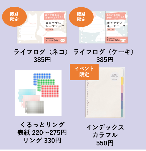 どんなトキにも寄り添い、自由に組み合わせて使えるルーズリーフ。本イベントでは “4つのトキ”を軸 に、ルーズリーフを「暮らしを楽しむアイテム」として提案します。A5とミニサイズの活用や抜き差 し自由なバインダー機能を活かした、スケジュール管理から日常ログ、スクラップ、カスタマイズまで 多彩な使い方を展示します。