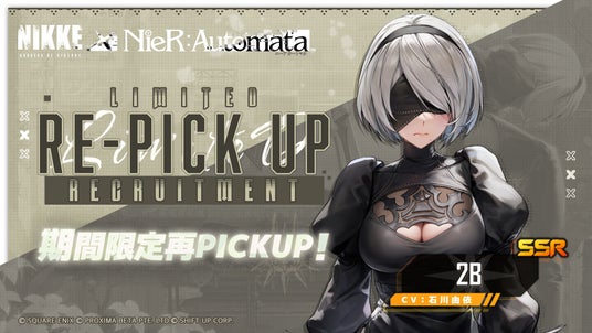ヨルハ部隊所属のアンドロイド、SSRキャラクター「2B」が期間限定募集で再登場します。