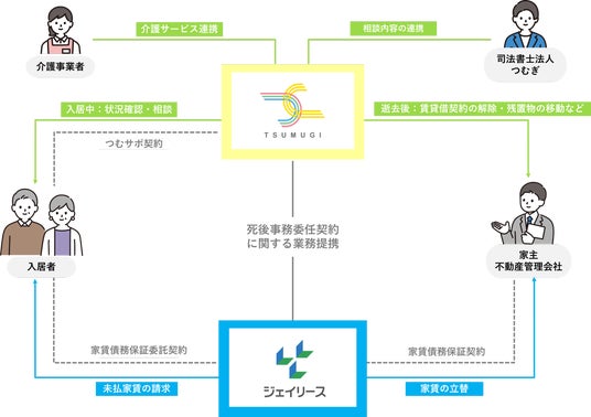 ジェイリース株式会社(本社:東京都新宿区・大分県大分市、東証プライム市場:7187、以下ジェイリース)は、シニア世代の生活支援並びに終活支援を行う株式会社つむぎシニアライフサポート(本社:大阪府大阪市 以下つむぎシニアライフサポートと表記)と死後事務委任契約に関する業務提携を開始したことをお知らせいたします。
