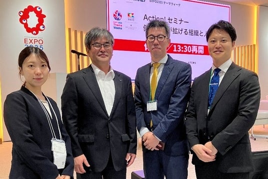 このたび、株式会社クボタ様(以下「クボタ様」)が大阪・関西万博で開催されたAction!セミナー「健康経営が拡げる組織と人の未来」(以下「本セミナー」)にて講演されました。東京海上ディーアールはクボタ様の健康経営(R)※1推進をサポートしている関係で、今回のセミナーでのご登壇にあたってサポートメンバーとして現地参加いたしました。