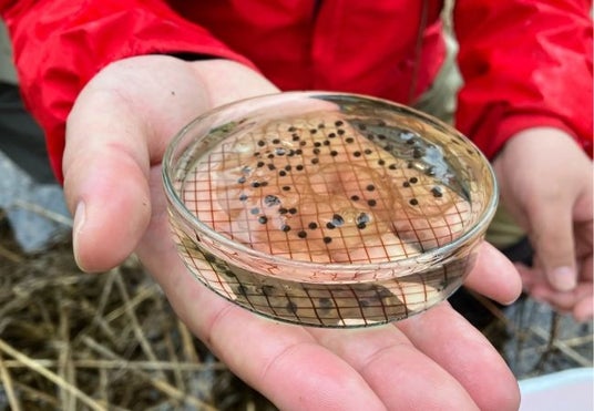 本取り組みでは、「キタサンショウウオ」の個体数の回復を目指し、AOAO SAPPOROの生物担当スタッフが現地・標茶町を訪問し、標茶町博物館とともに生息域の調査と卵嚢の採取を実施しました。
