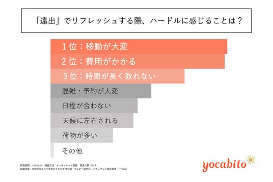「出かけてリフレッシュしたい」という思いは持っていても、多くの家庭にとって遠出は頻繁には難しく、だからこそ身近な場所でのリフレッシュの「質」が重要になっていることが伺えます。